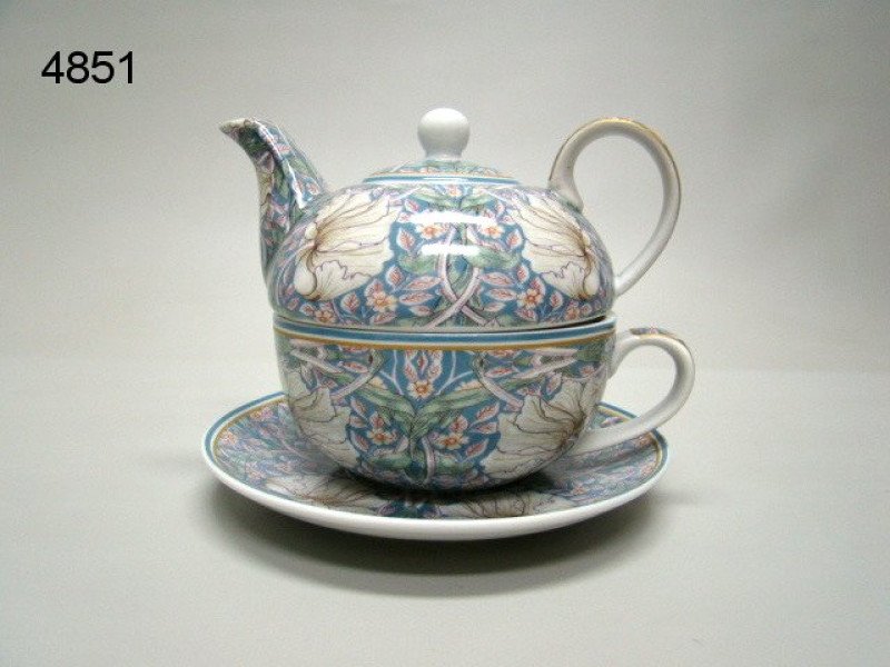 Deze set bestaat uit een theepot, een theekopje en een schoteltje, allemaal versierd met een opvallend William Morris-ontwerp. Het ontwerp bestaat uit polychrome scrollende bladeren en bloemen, afgewerkt met een gouden rand voor een elegante uitstraling. De theepot heeft een inhoud van ongeveer 200 ml, wat hem ideaal maakt voor een kopje thee voor één persoon. De theepot kan perfect op het theekopje worden geplaatst, wat zorgt voor een compacte en mooie opstelling. De set wordt geleverd in een luxe doos, wat deze Tea for One set een perfect cadeau maakt.