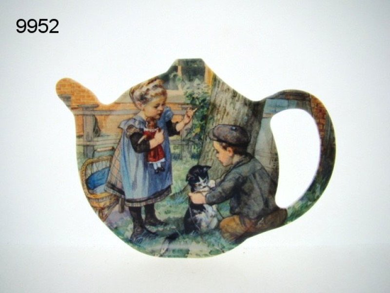Schattig theetipje van 13 x 10 x 2 cm met de tekening van Ot en Sien en hun nieuwsgierige poes. De poes lis het niet helemaal eens met de behandeling door Ot, waardoor het plaatje een speels en aandoenlijk karakter krijgt. Perfect voor het opbergen van je favoriete theezakjes of als klein decoratief accent in de keuken.